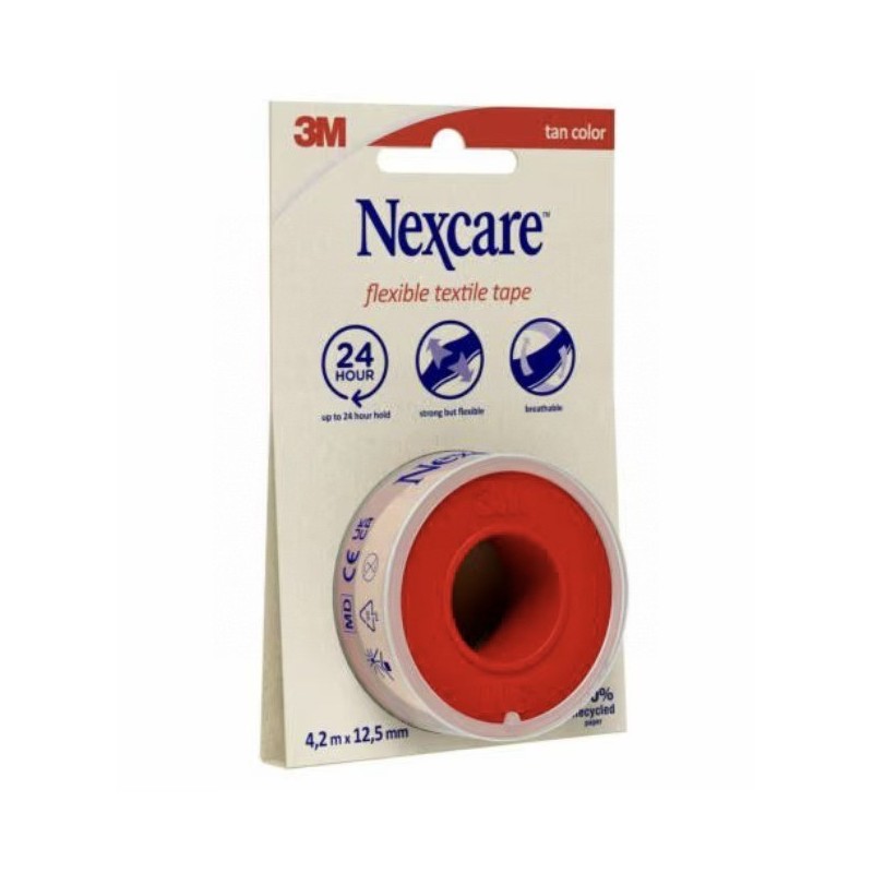 El esparadrapo de tela flexible nexcare flexible textile es el primer elemento esencial de primeros auxilios en el hogarPuede utilizarse para sujetar apósitos, compresas y almohadillas en su sitio con firmeza y seguridadLa cinta está hecha de un material flexible y adaptable que se mueve con su cuerpoLa cinta textil flexible nexcare™ está hecha de un material fuerte, duradero pero flexible, que se mueve con su cuerpoLa cinta ofrece una buena adherencia durante 24 horas y deja un residuo mínimo de adhesivo al retirarlo de la pielLa cinta textil flexible es un elemento esencial de primeros auxilios en el hogar, en el que se puede confiar para sujetar apósitos, compresas y almohadillas en su sitio de forma firme y seguraPermanece en su sitio en los dedos.