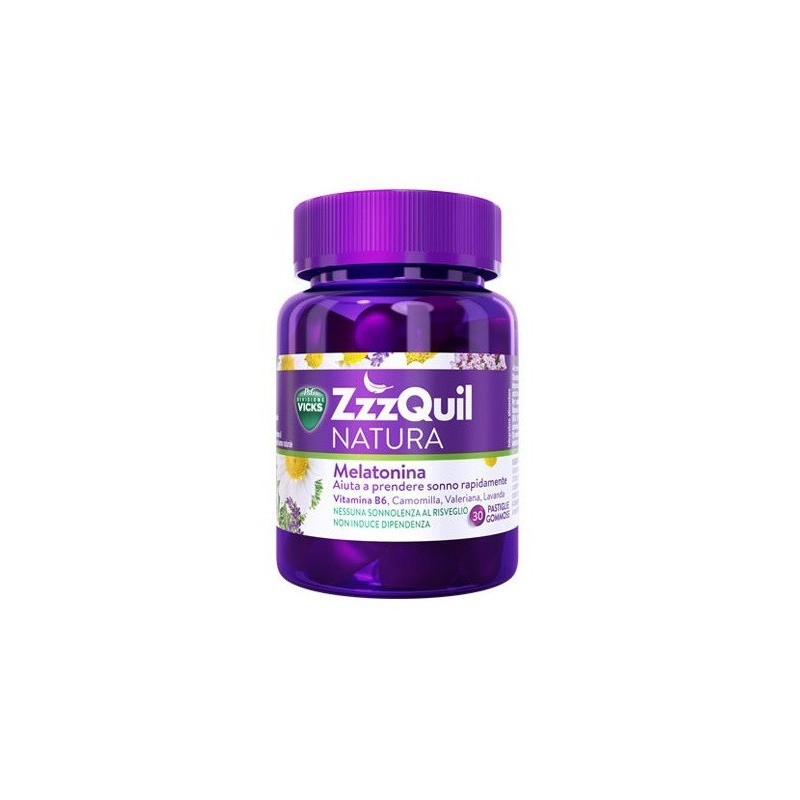 El complemento alimenticio para ayudar a dormir de ZzzQuil NATURA contiene melatonina, una hormona natural que ayuda a conciliar el sueño rápidamente. Además, su fórmula exclusiva a base de vitamina B6 y extractos de camomila, lavanda y valeriana, estimula una experiencia natural, para que disfrutes de los beneficios del sueño.